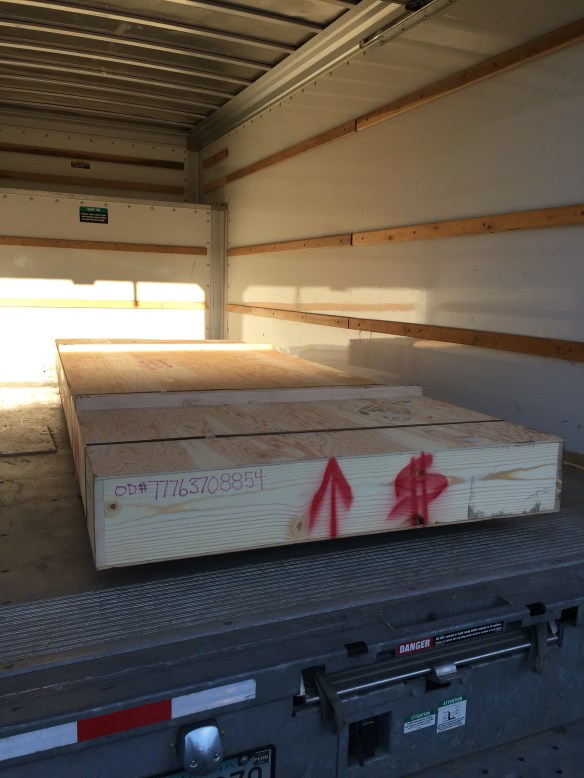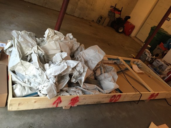 Today the tail kit arrived at the trucking company. I made arrangements to rent a UHaul and go pick it up from the dock. Logistically that just worked better. It’s rather difficult to get help come in the middle of the day and be here exactly when the truck arrives, so I figured renting a truck made the most sense. That way, I could just arrive at home and wait for people to come to help out. It went pretty smoothly. A two wheeler in front and 2 of us pushing from the back, it slid right down the UHaul ramp and into the garage.