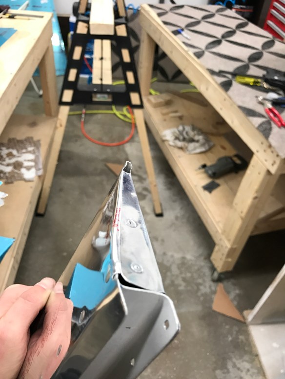 Below is yet a 3rd set of new skins for the trim tabs. After doing some reading, I’ve decided to do what others have done, and that is to cut off the tabs and fabricate small riblets to put on the ends instead. It might take me a few tries to get those correct, but I have lots of scrap trim tab metal to work with.