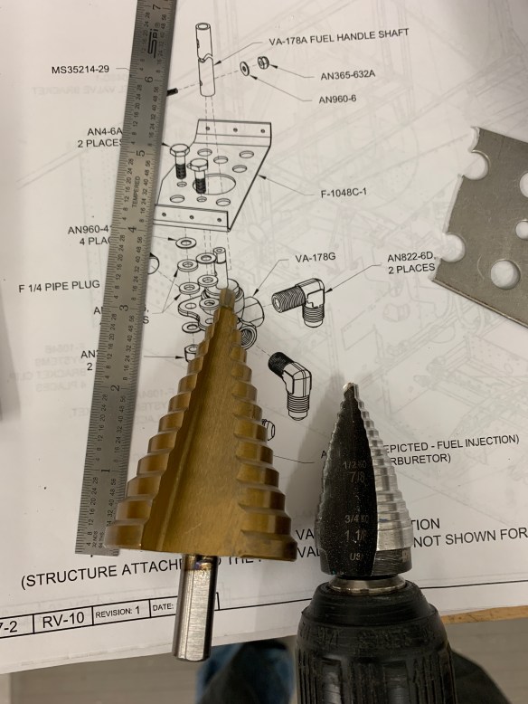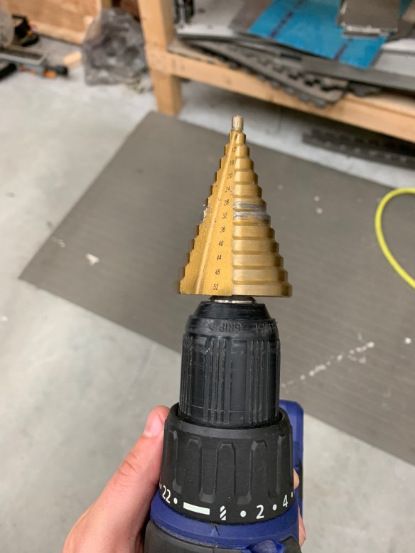 In order to cut the center hole of that custom bracket, the current biggest unitbit I had was just shy of being able to support the diameter of the Andair valve. So I had and excuse to buy a new tool. A massive unibit!