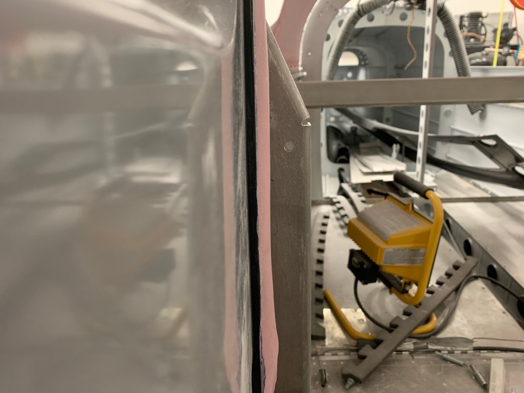 I then test fit the McMaster seal. Initially just a section along the bottom of the door, then all the way around. I will still need to sand down a couple of high spots in the corners as the thickness of the fiberglass is > 1/4″. I might also need to build up some areas using the seal as a template for an epoxy/flox mix, although I’ve seen some builders say that they didn’t need to do this.. so guess I’ll see what makes the most sense a little further along.