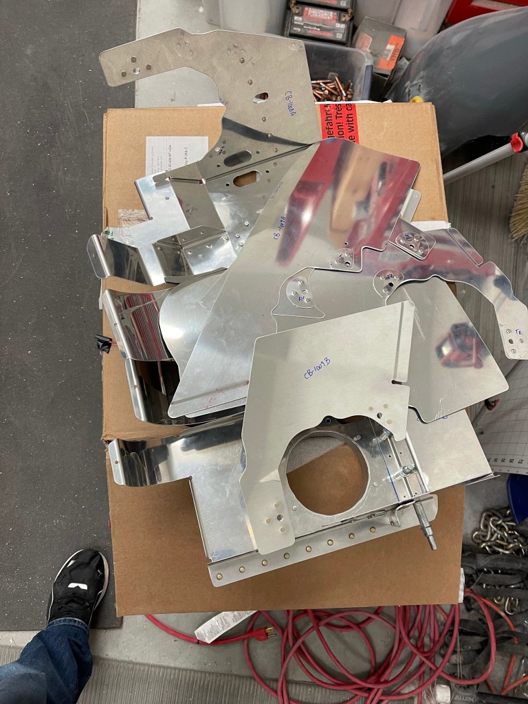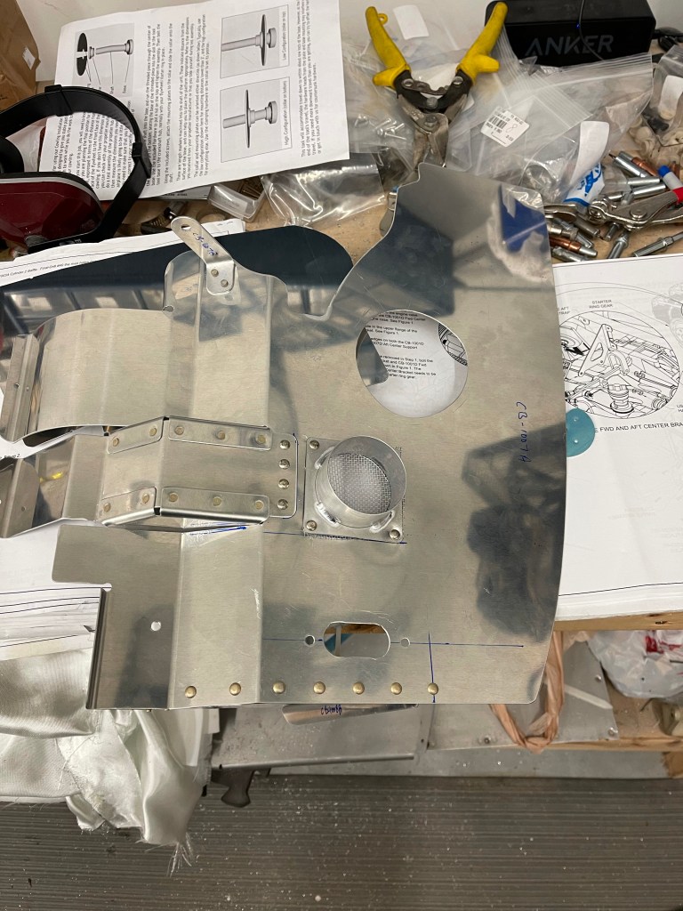 I worked on fitting the #5 and #6 cylinder baffles in place and putting on the Aerosport engine mount covers. 3 #6 screws were used with nut plates to attach making sure to not drill into the mounting ears.