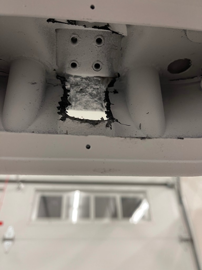You can see the foam found its way out the plenum side too. Of course I put a cap on this filter side, so it wouldn’t go inside the tube.. This excess will easily be cut/sanded away.
