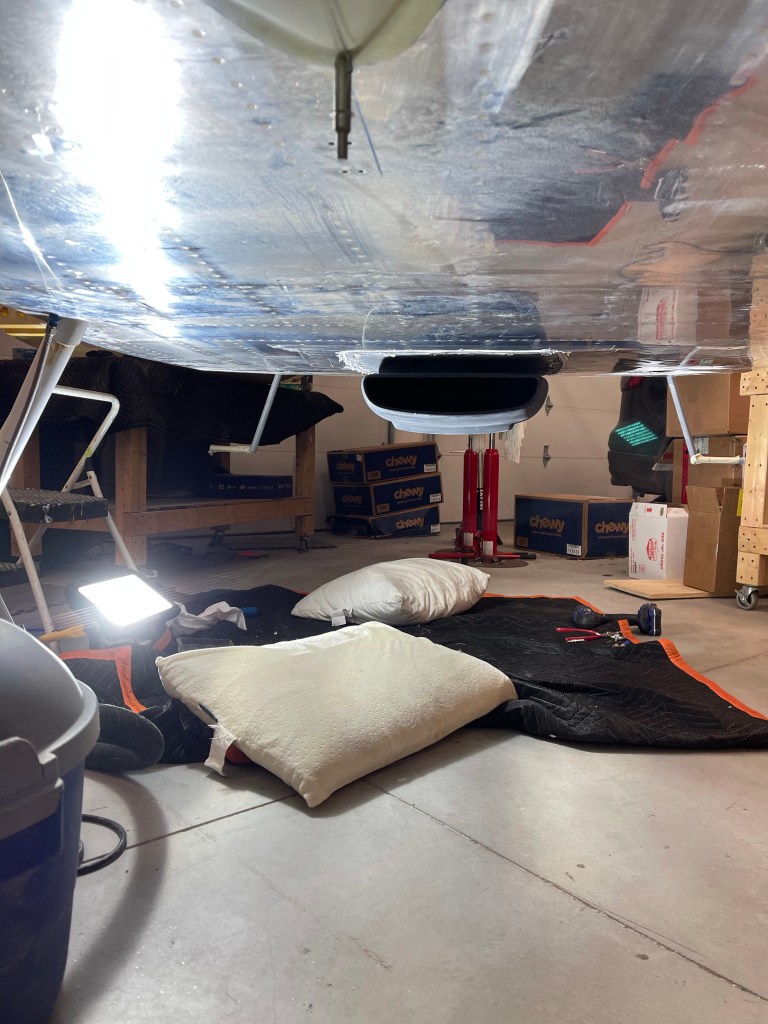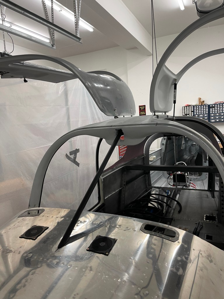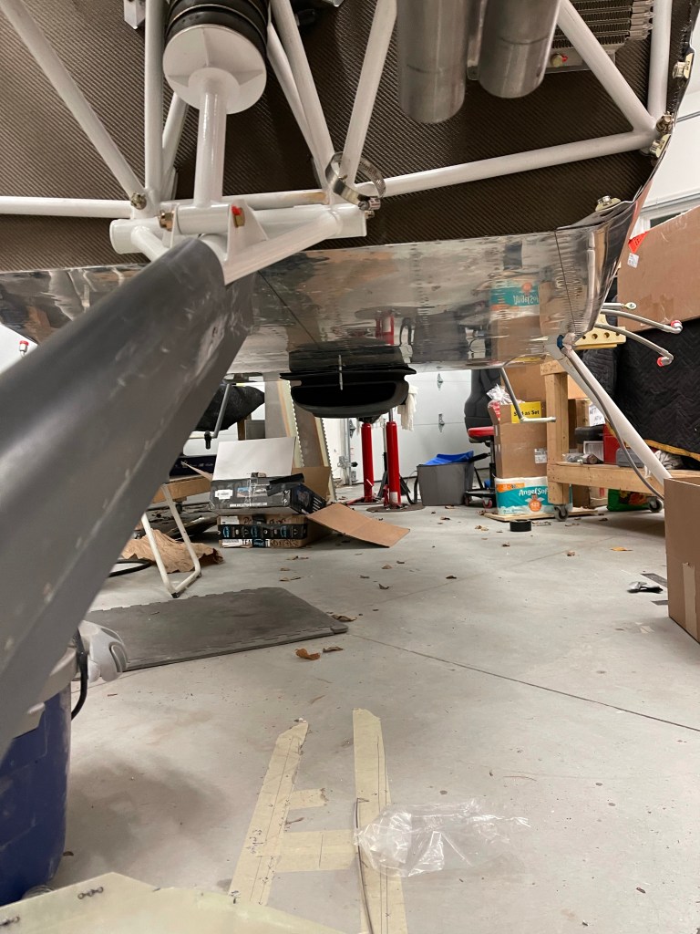 The culmination of the day was bolting the center support bar, which I’ve painted black, into place so I can finish up the fiberglass and interior painting prior to moving to installing the windows and putting the plane up on the gear.