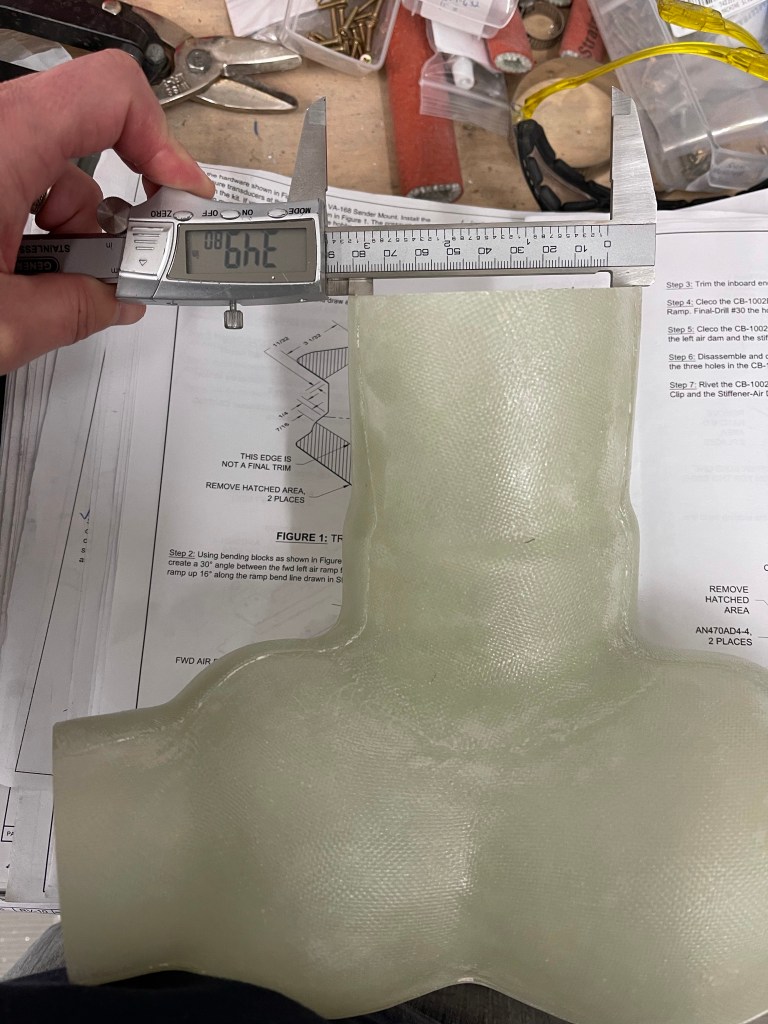 Creating a templateTransferring template to carbon fiber. Ramp cut and in place. Another angleBending up the side baffle for a screw location. Ramp in place!Another view. Looks like a #6 nutplate made it into my #8 bin.. I’ll have to fix that at some point.. All finished up with the left center baffle in place.