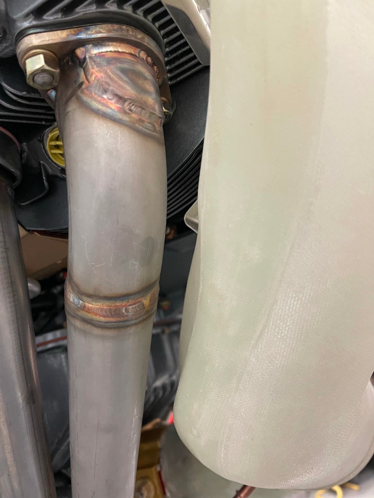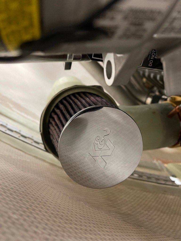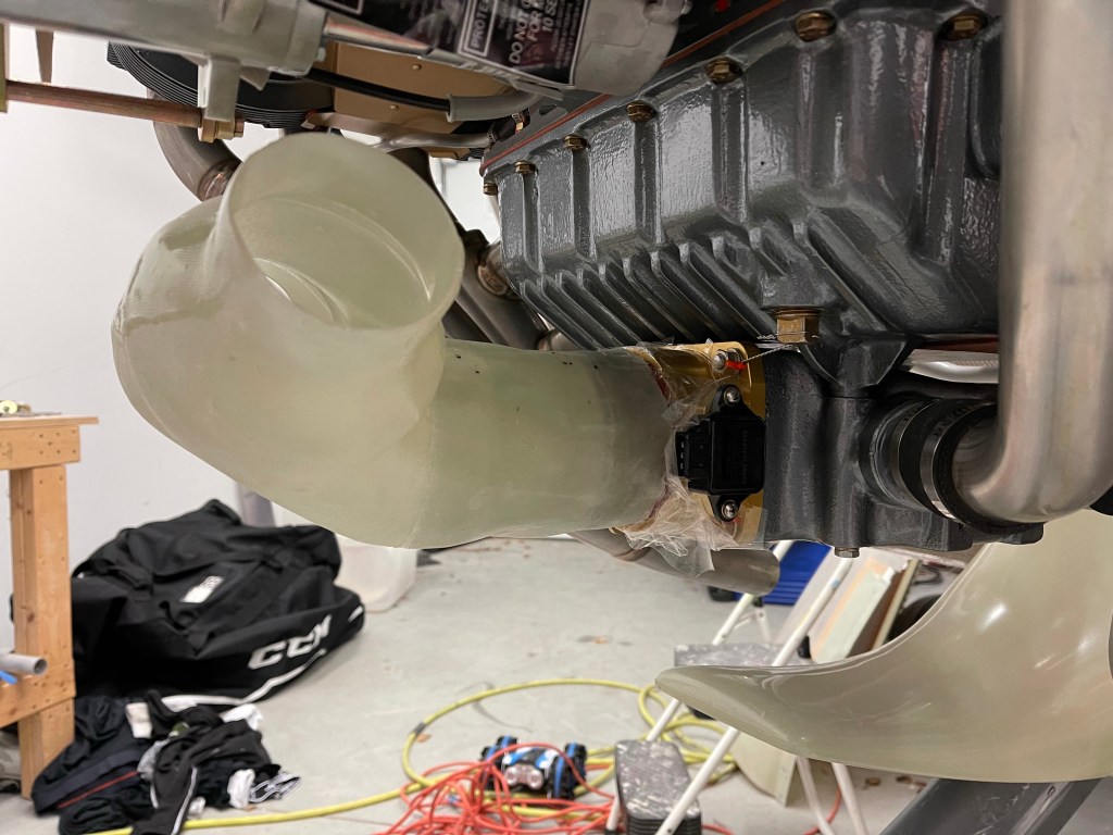 One of the other benefits to my cowl being so far forward, is that the intake tube didn’t need to be modified to clear the #1 exhaust pipe. Below is a picture of the intake tube in place and you can see the stock bump in for clearance. Many other builders had to cut this area out and bump inwards more.
