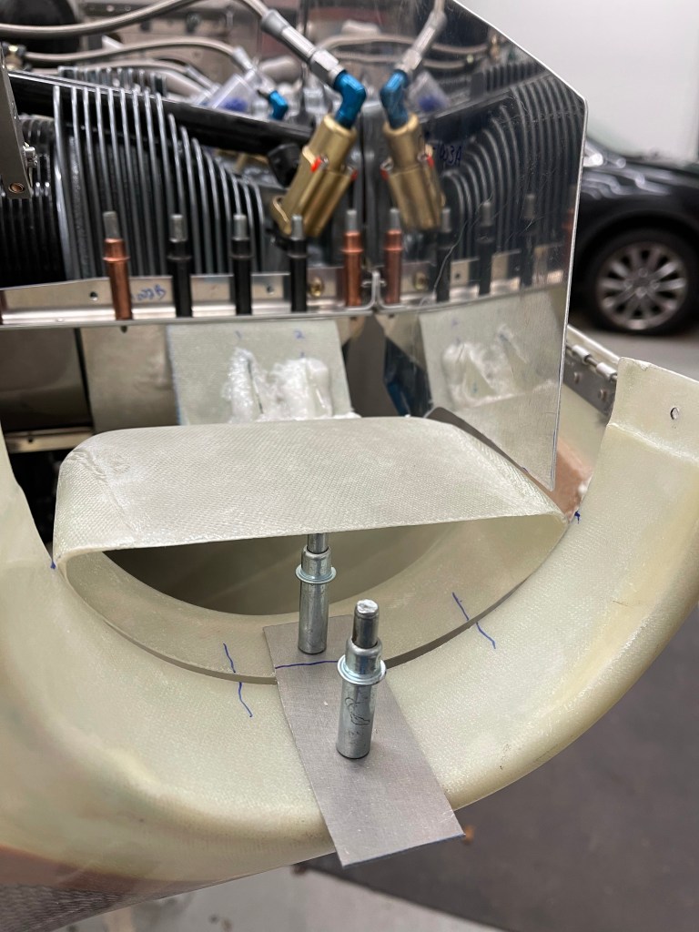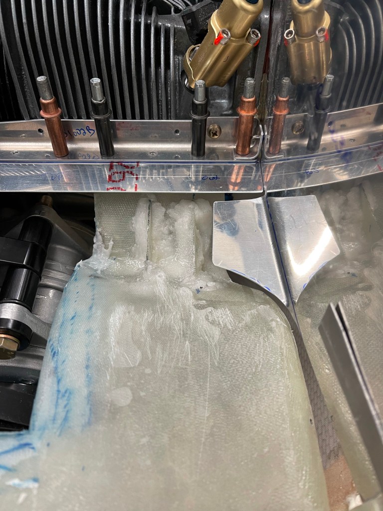 I then mixed up some flox and bonded the “wall” in place with a small “D” shaped piece to provide support against the cowl wall. This was repeated for the other side.