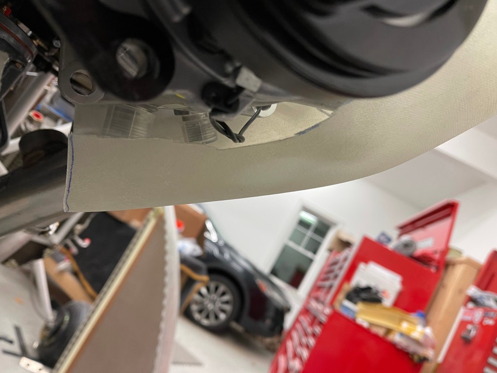 Filter, flange and end cap taped into place on plenumClearance to AC and hose endsFinally checking clearance to the lower cowl.. There’s plenty!