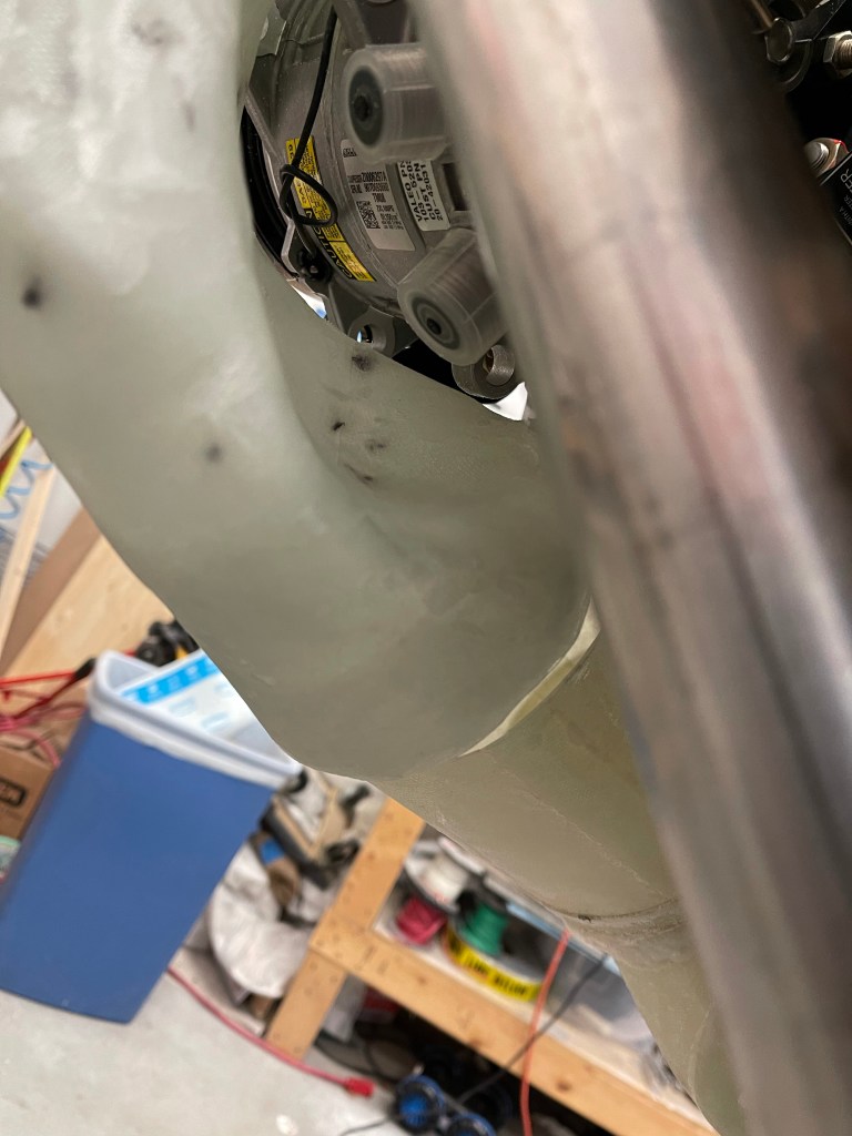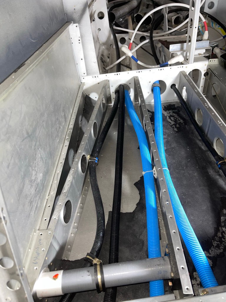 One implication of going down the right side is getting the hoses all the way to the back. This required me to drill out the right baggage and rear seat pans to re-gain access.. Probably took 1.5 hours to get that all done.. Stinks to have to do this after it was all closed up, but such are decisions to add AC later in the game.