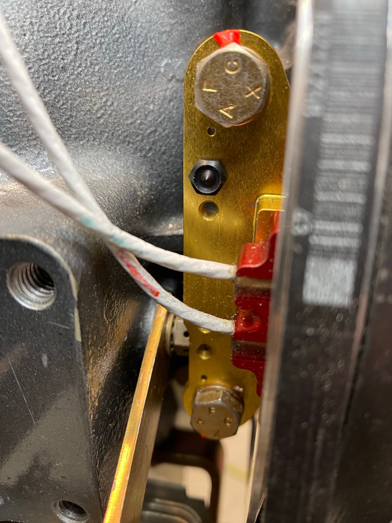 Back to the metal guard for the hall sensor… I punched the top side, drilled the hole, and once that hole was located, I installed the bolt and marked the location of the 2nd hole then drilled that and bolted it to the hall sensor mount. Below is a test fit of both bolts installed.
