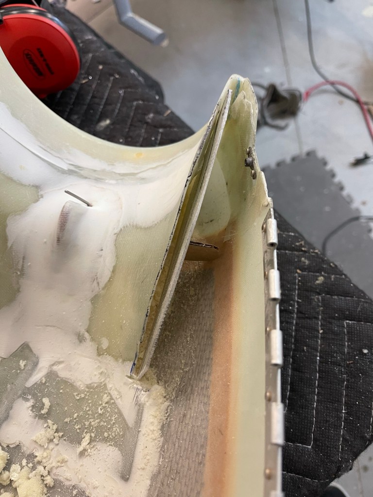 Floxing it all back together. I’ll eventually sand this down and probably lay a layer or two of cloth over this area.