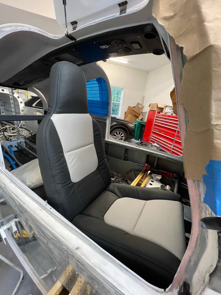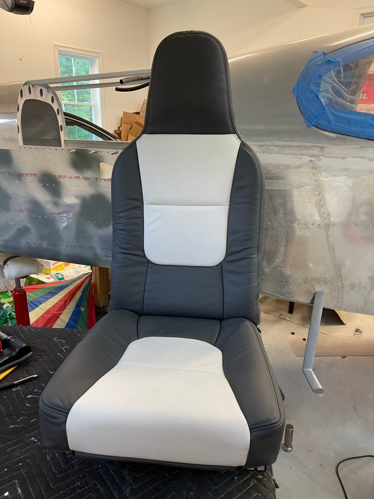 Just before Oshkosh, my seats from Aerosport Products arrived. They came out great! I had to place one into the plane in rough position to see what they look like.