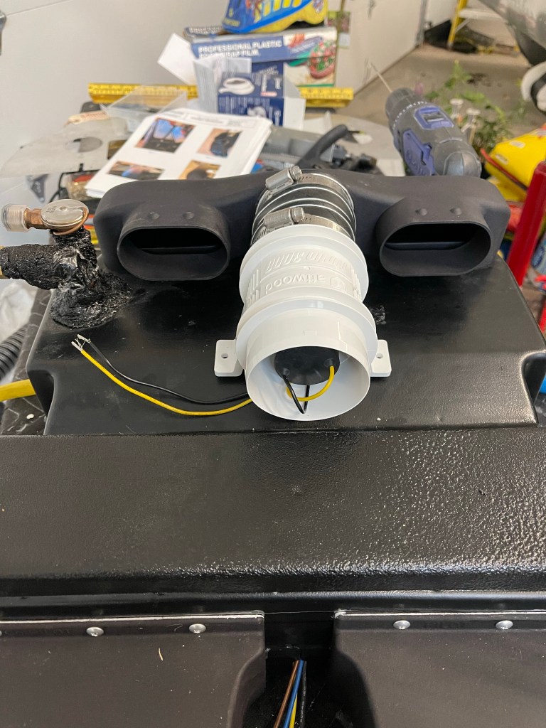I’m adding a 3″ blower fan to boost airflow into the overhead.