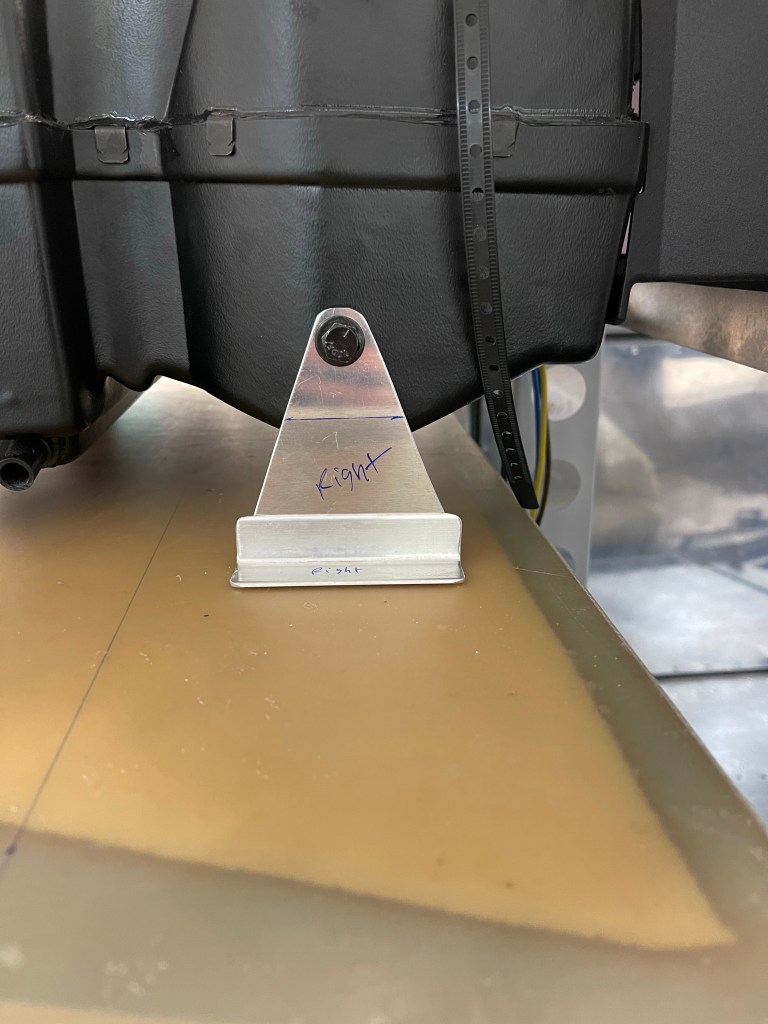With those installed, I positioned the evaporator, and fabricated new forward brackets with an angle and some scrap metal, seeing it sat much higher than the bracket provided to me and they didn’t reach the shelf. This was a suggestion from Bill.