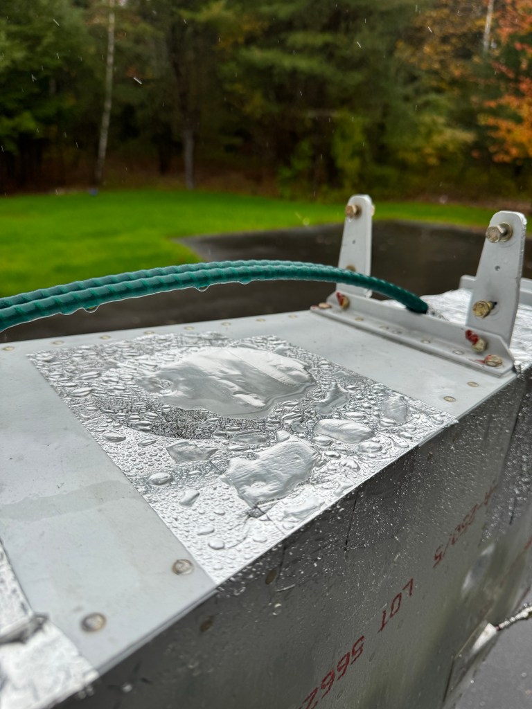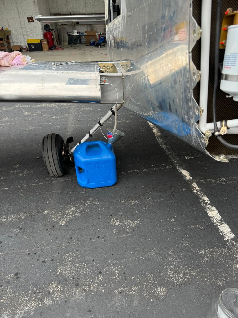 I taxi over to the self serve and open the right tank. Sure enough, bone dry.. That’s odd.. As it turns out, I had a weeping rivet that they fixed prior to paint which necessitated draining the tank. I then go to fill up and the self serve pump isn’t working. It’s not powered on for some reason.. We suspect the thunder and lightning storm the previous night might have tripped something.. There was someone mowing the grass, so we were able to flag him down and he helped to reset the pump and got it working.. For a short time there I was thinking great.. I’m going to be stuck here another day because I can’t get gas on a Holiday.. No way I’m taking off with a bone dry tank.. that’s just asking for trouble.