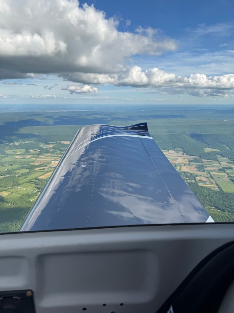 I ended up climbing up to 7500′ on top of the clouds.. As I got further north, the scattered/broken layer became a solid undercast below me, but about 70 miles later I crossed over the edge of the frontal boundary and the clouds below disappeared. into clear and a million. I ended up landing in Allegheny County just outside of Pittsburg, PA after a 3.5 hour first leg. Atlantic Aviation there was great.. They topped me off, I hit the bathroom and grabbed a hot dog and some peach tea they had.. Made for an excellent quick turn dinner. I then departed for the last leg home, which took me 3 hours. So 6.5 hours total to get home. The last leg had a few storms starting to pop up. I only had to deviate once about 20 degrees for 15 miles or so and once I got around that area of heavy precipitation, I pointed back direct home and any isolated cells that were around were far enough to the left or right that I didn’t need to deviate again.. All-in-all, a pretty uneventful flight and everything worked perfectly.