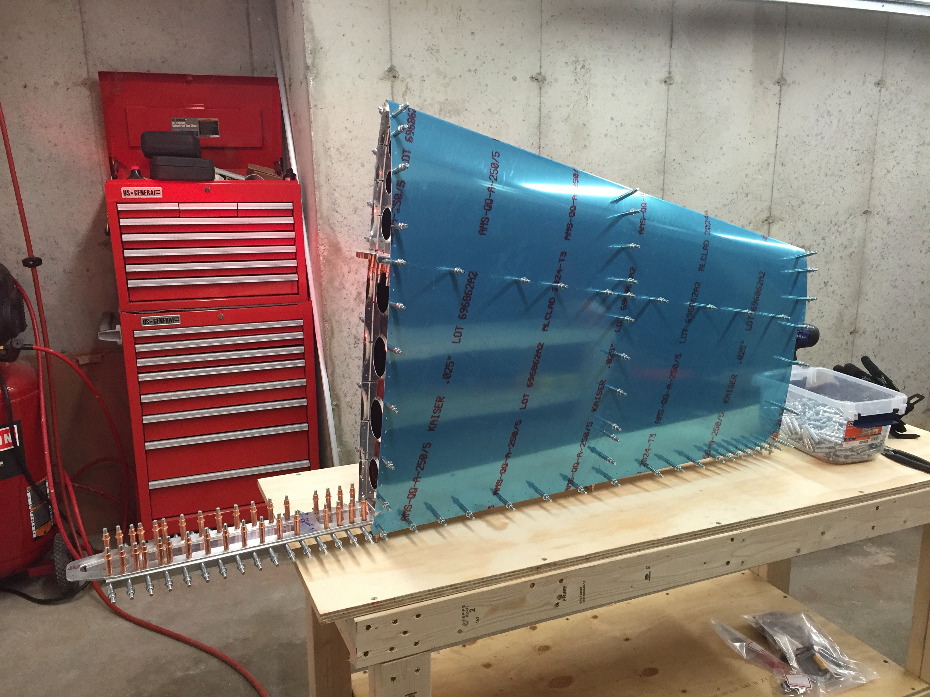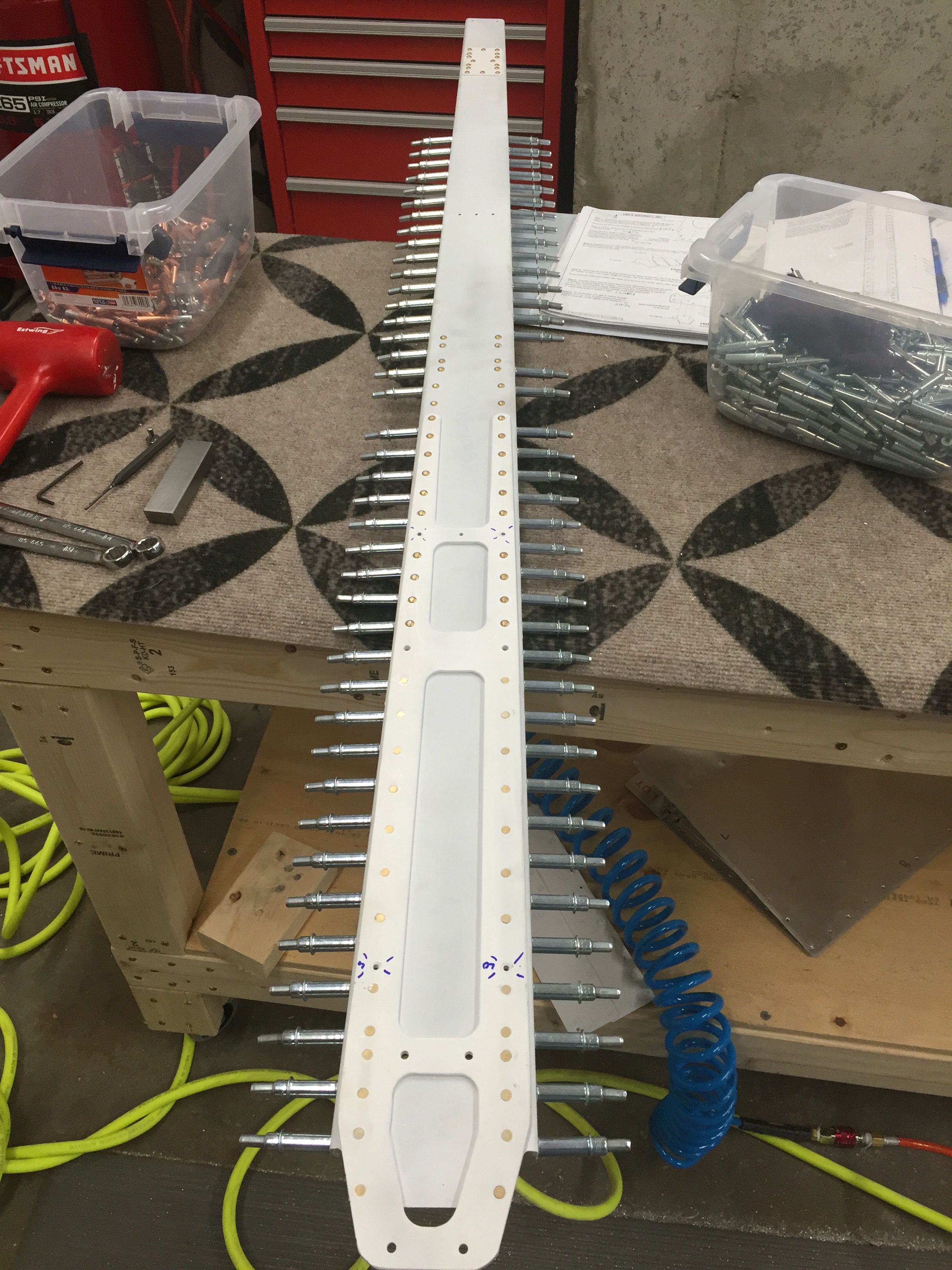 Once that was done, it was onto riveting the spar pieces together. My pneumatic squeezer made quick work of that.