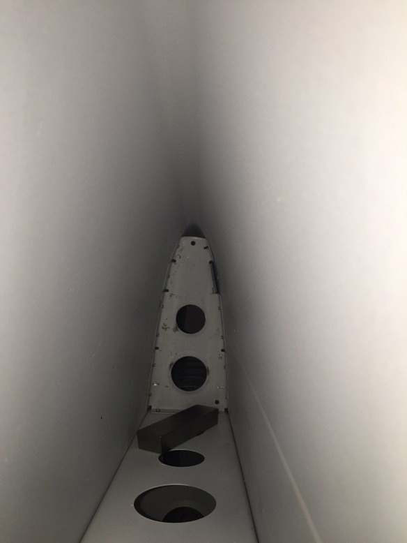 So I drilled out the rivets that I had completed on that side and uncleco’ed the skin to open it up. I was able to bend the flange back into a reasonable position that should work. Being a bit concerned, I also contacted Van’s support to ask if they thought it was okay to build on or stop and order a new piece. I was pleased when about a half hour later, they responded that it doesn’t look like it bent enough to cause work hardening and to bend it back and carry on. Here are a couple of pics of it bent back mostly into position.
