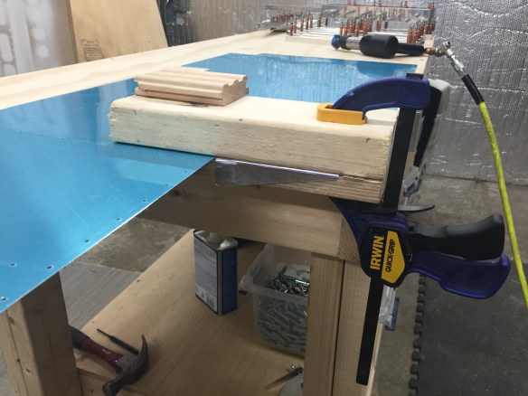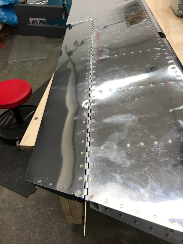 I then spent some time riveting the trim covers and trim attachment brackets together, along with marking and trimming the counterbalance weights.