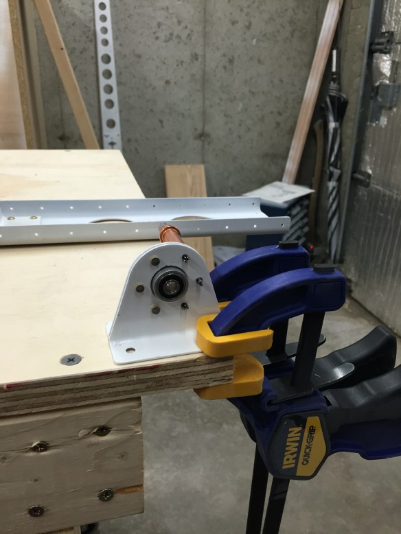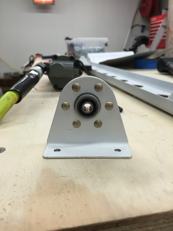 So while I wait for my replacement roll of 3M VHB tape from Amazon, which actually came today, and at first look, seems to behave better than the first roll I got…. I riveted together the rear spar, stiffener, and hinge brackets of the Horizontal Stabilizer. I was also able to assemble and rivet together the inboard hinge bracket and bearing assembly. Some pictures of the progress…