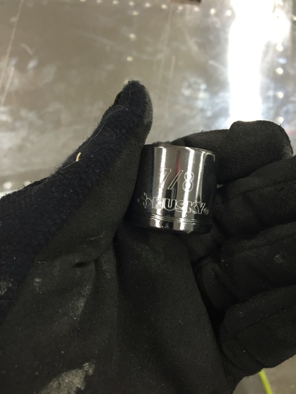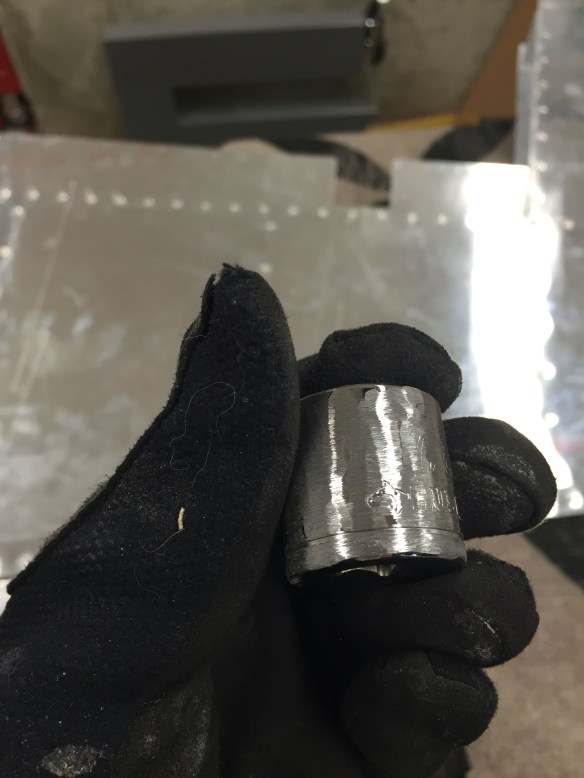 I recently read on Van’s Air Force a tool that Eric, a fellow RV-10 builder, had created to make this job easy. I decided to give it a try, so in preparation to do that, I spent some time fabricating this tool from some closet rod, two 3/8″ drive sockets, and JB Weld that I bought from Home Depot.