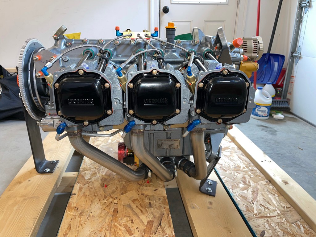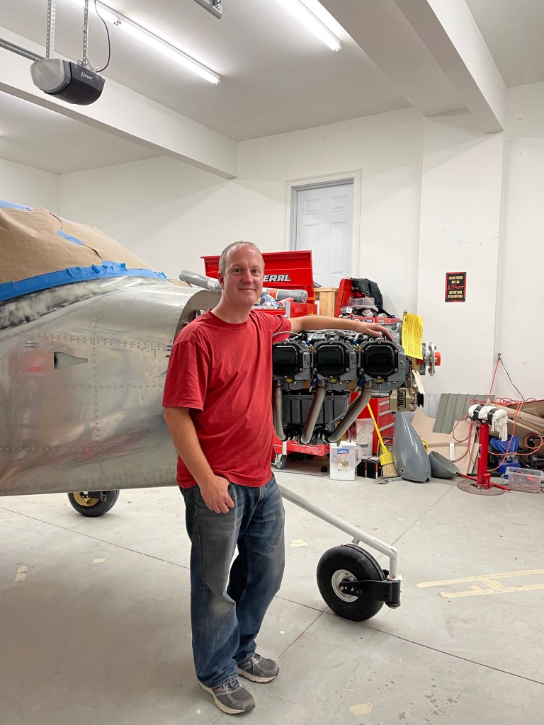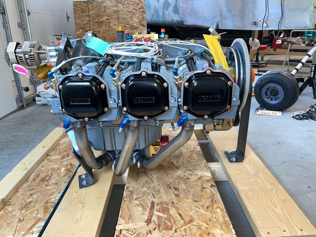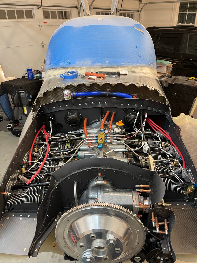 After spending some time double checking that the SDS system was seeing the flywheel magnets, programming all the gauges for green/yellow/red range markings, etc… I was confident that I was ready to try to start the engine for the first time. I used my truck to strap the plane to just in case something happened with the brakes. Fire extinguisher at the ready.. and I asked a fellow EAA member to come by to keep an eye on the engine while I ran it for about 3 minutes. I ran around 1000 RPM for a minute and a half or so, and then went to 1700 RPM and cycled the prop a couple of times successfully.