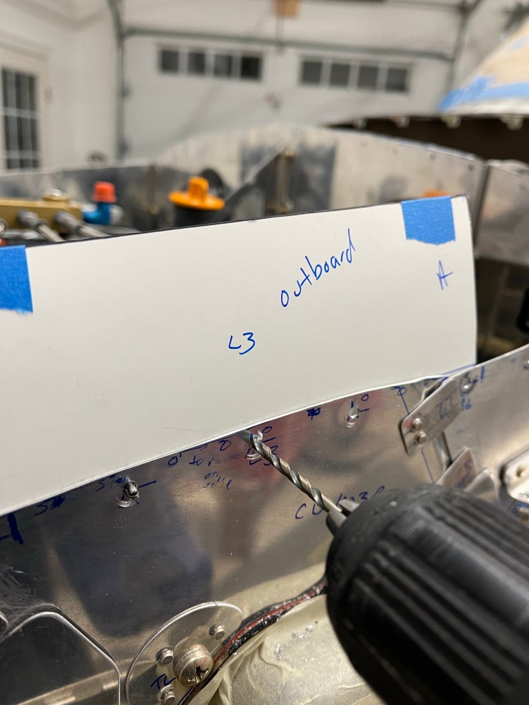 Working on the Left center baffle Match drilling the hole for the 2 center baffles.