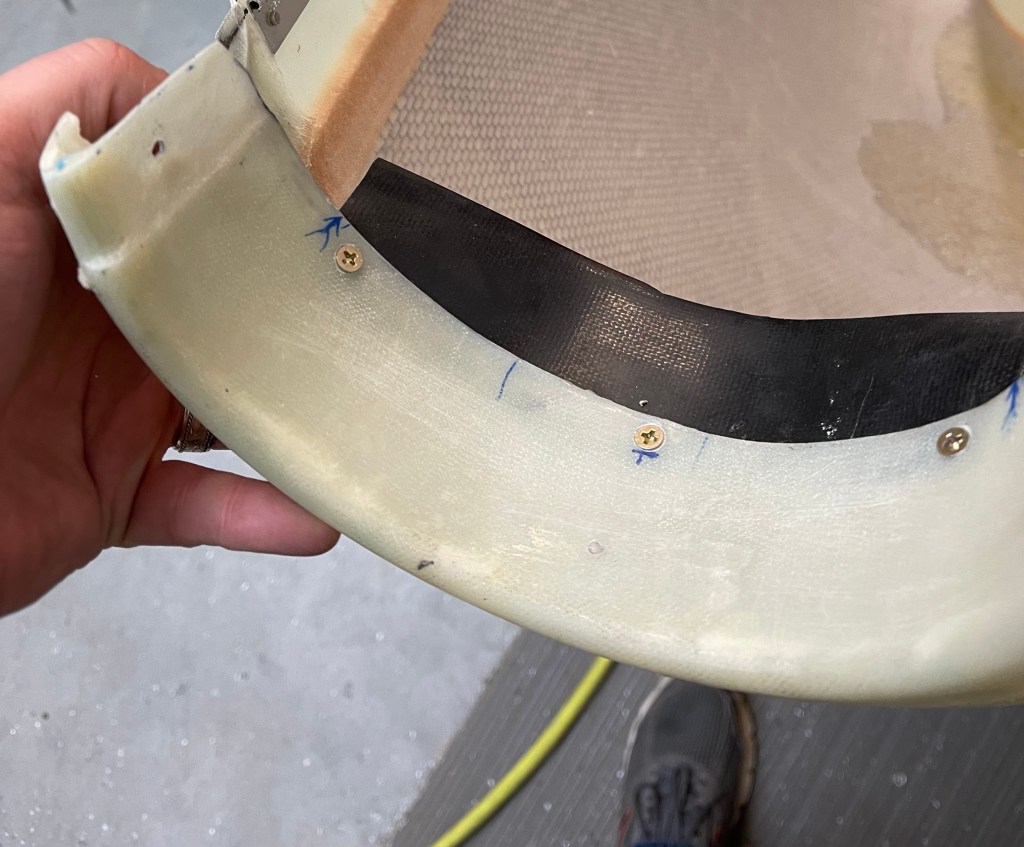I utilized 3 screws to tie the aft piece of metal holding the carbon fiber ramp to the front pieces, including the piece of metal that runs under the carbon fiber ramp. I trimmed the excess away on the inboard side of any carbon fiber and metal plate so it didn’t protrude past the angle.