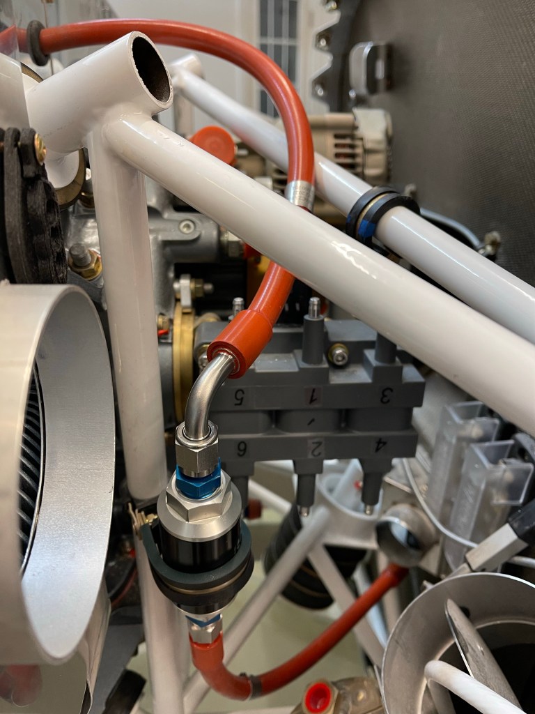 I was then able to measure for my cable lengths. I used some vinyl tubing I had lying around to emulate the route for both the throttle and prop cables. I marked around the mid point of the threaded part of the bearing/tie rod terminals and made sure the controls were both full deflection in the same direction (fwd/fwd or aft/aft), I then pulled the tubing out and measured the marks. I did add a couple of inches for some slop or slight variations in the install path that I measured to.