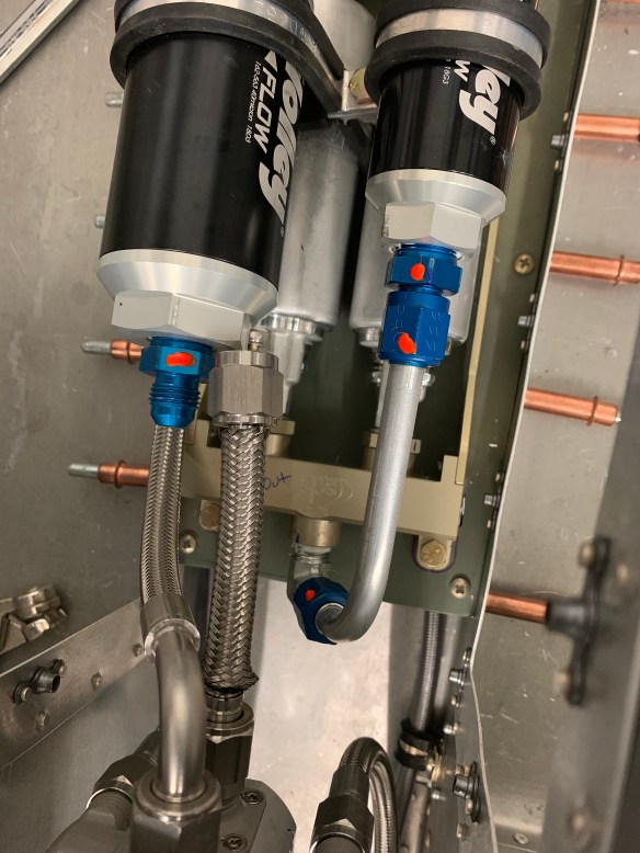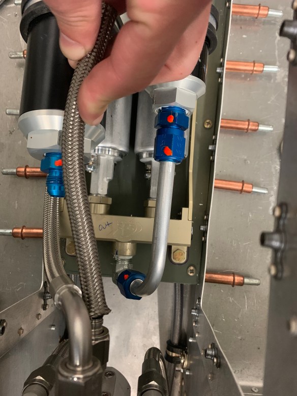 Back to the fuel lines and getting those wrapped up. The hose package from Tom really makes this section easy. It’s mostly just hooking up the hoses between fittings and torquing them properly.