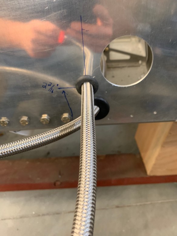 Then it was securing the lines to the system control brackets. This required a little dremmeling to open them up a bit more to accommodate the larger diameter lines. The return line passes under the brake line on its way out. There is a little air gap between them, but I’ll probably wrap some spiral separator on one of them to avoid any rubbing via vibration.
