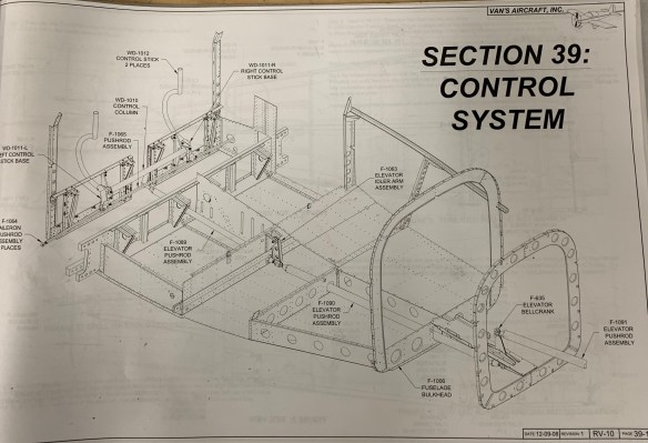 Now it’s on to section 39, the control system. Control sticks and pushrods will be installed in this section.