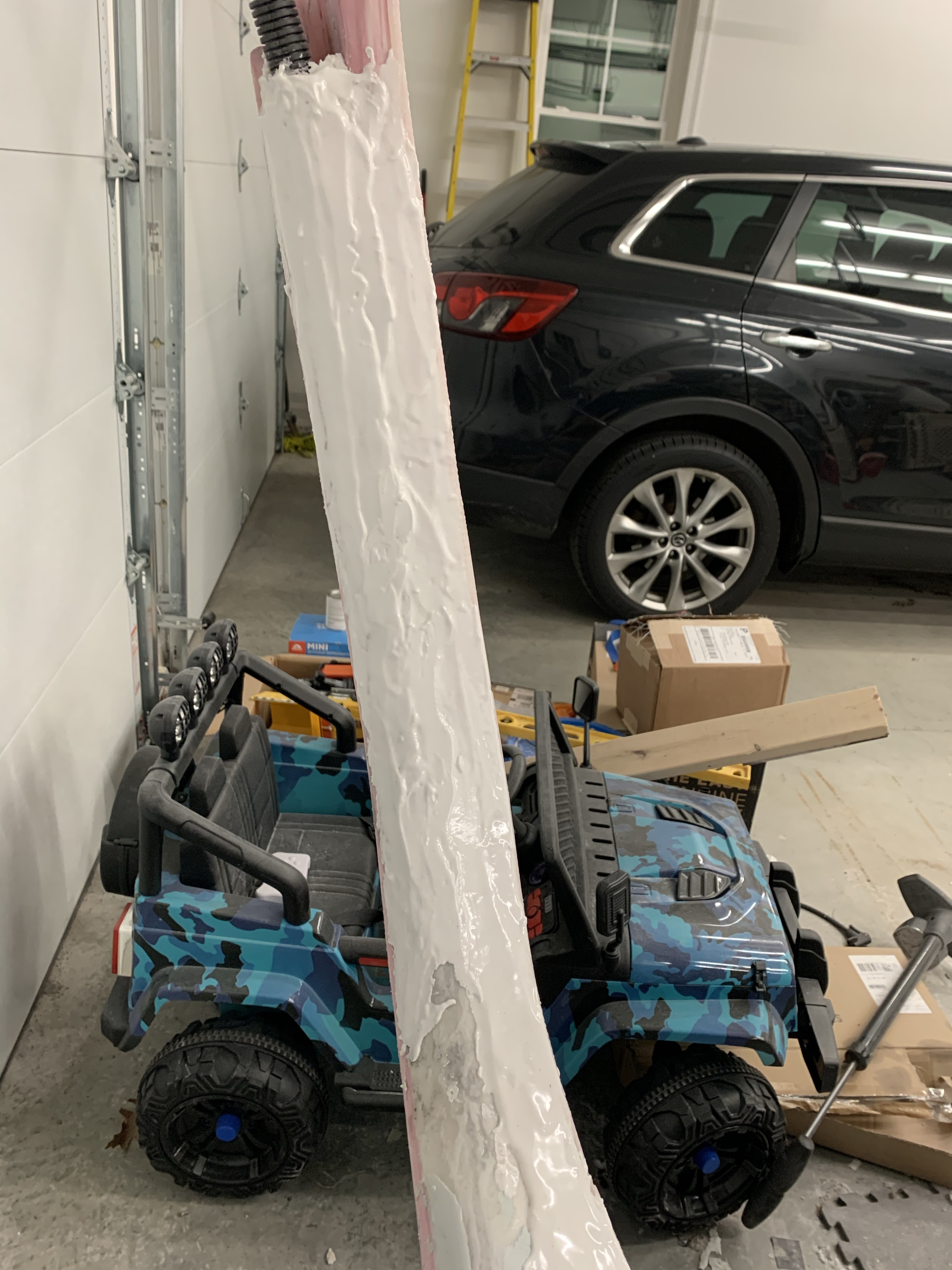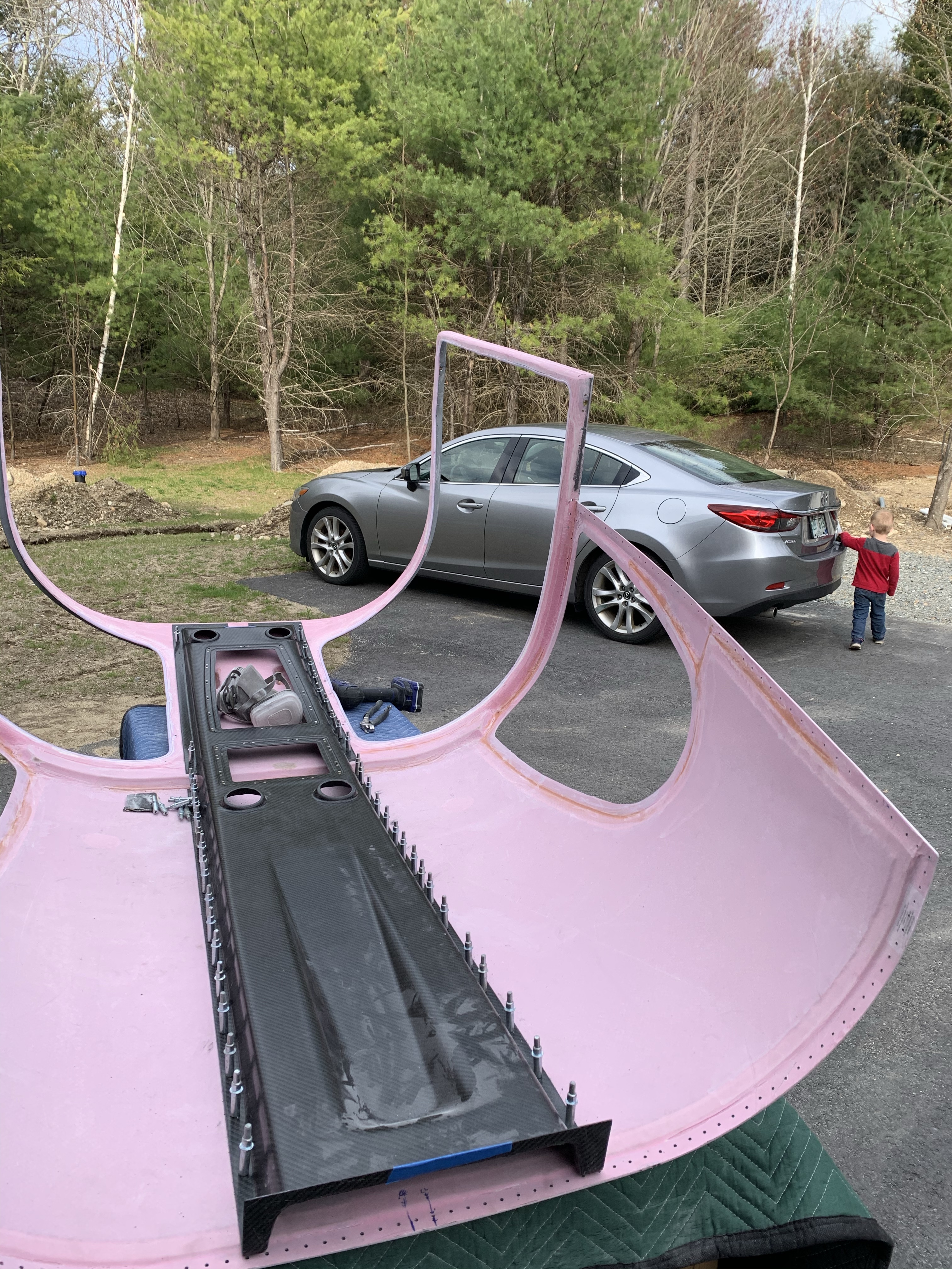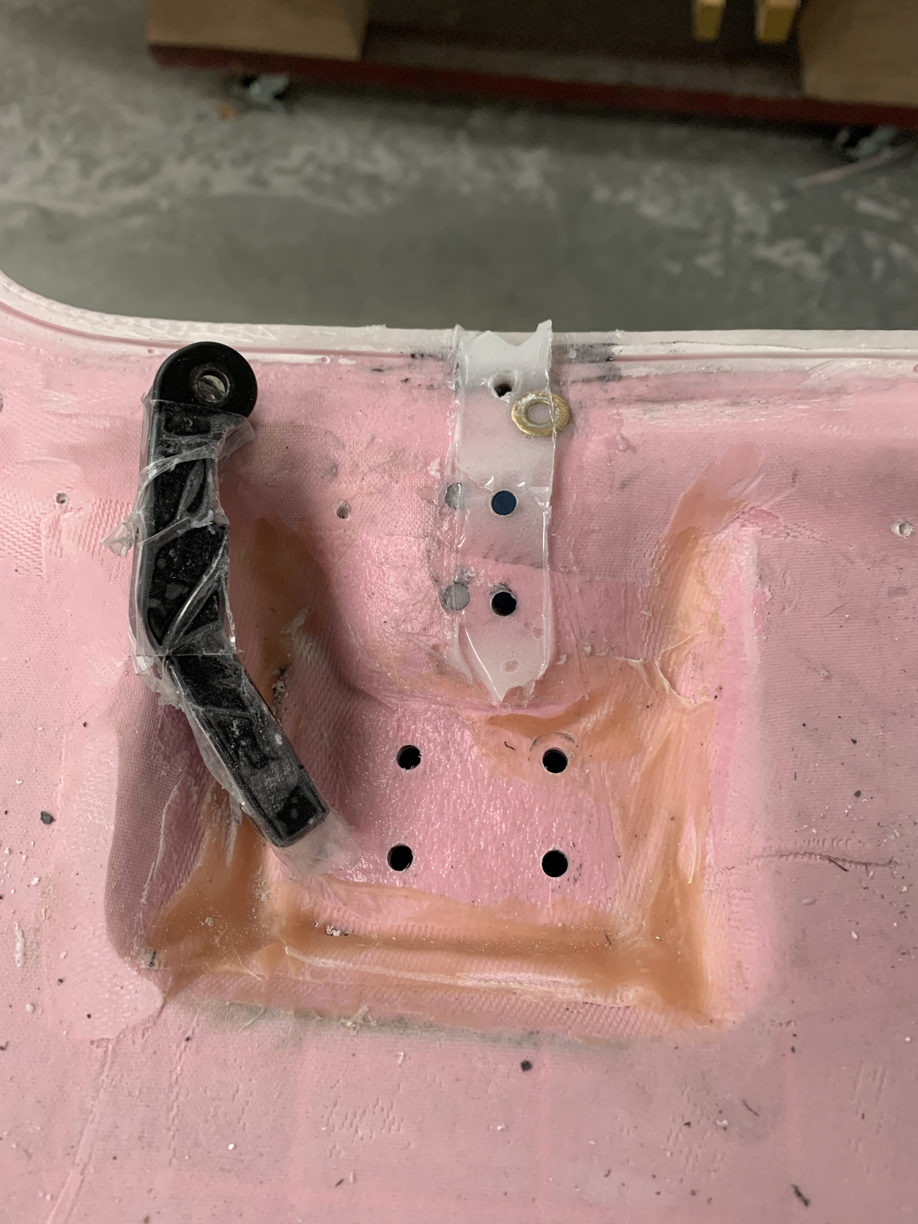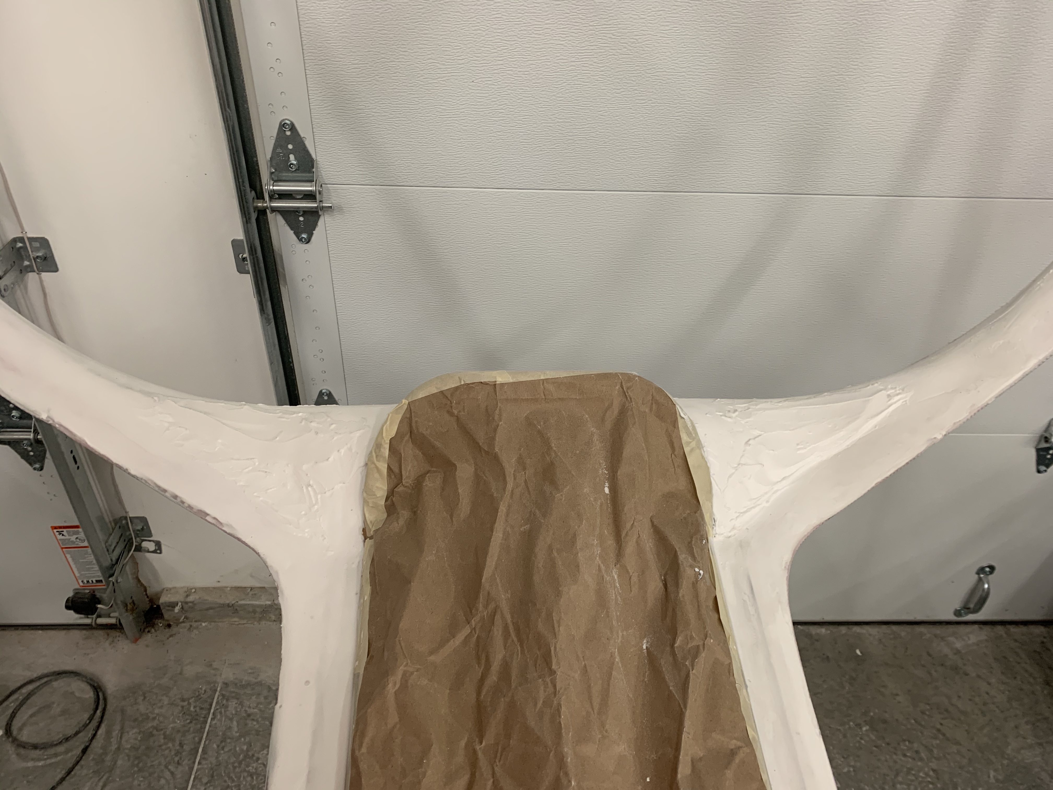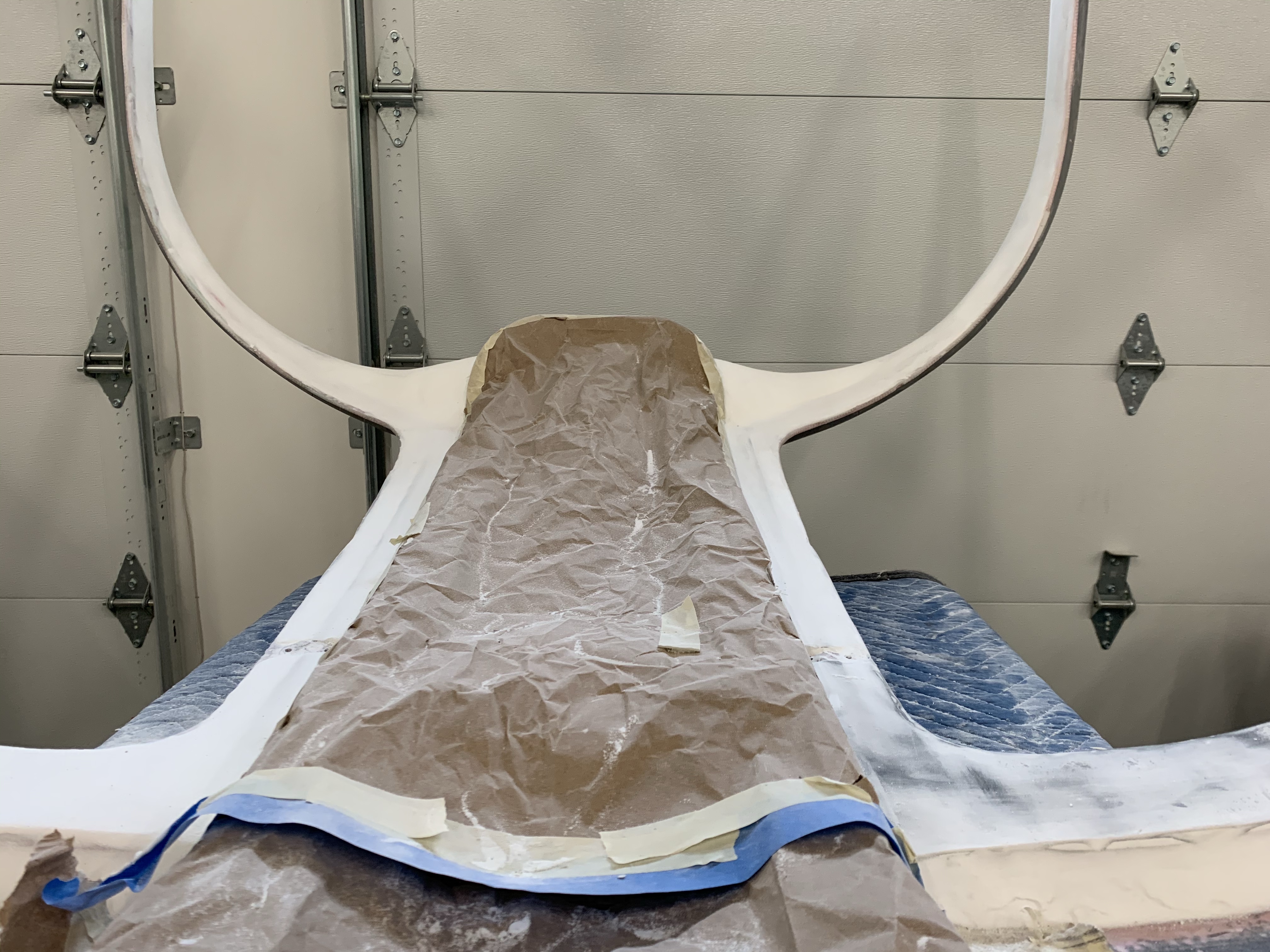 Then it was time to start filling in the surfaces that will be exposed and painted with filler. Initially I chose to use a polyester bondo material called Evercoat Rage Ultra. I did the vast majority of the right side with this.. I wasn’t really happy with it in the end. I found it difficult to mix properly and it did really stink the garage up really badly. I then tried using the more generally accepted epoxy and microballons as a filler on the left side. This seemed to go much better. I felt like I could mix it up properly and fairly consistently each time and it was easier to spread. I also doesn’t smell at all.. I’m sure most of my struggle with the bondo was inexperience and sticking with it probably would have gotten better, but I decided to forge ahead just using the micro. I spent the better part of 2-3 hours sanding off the bondo that I had put on the right side until I was down to pink again.. . I then spent several sessions of filling and sanding.. filling and sanding the micro over all the exposed areas. Through this process, I learned that it’s ideal to mix up enough for the whole job and spread more than you’ll need rather than doing multiple fill and sand sessions. The thought here is that you’ll never mix the epoxy and micro to the same ratio between batches and the 2 different mixtures have different densities making it hard to sand well. So far I haven’t found it to be too much of a problem, but I’ve also not painted it yet.. so maybe time will tell. The below pictures are various stages of slathering on micro around the door pillars and flat areas in the door entries.