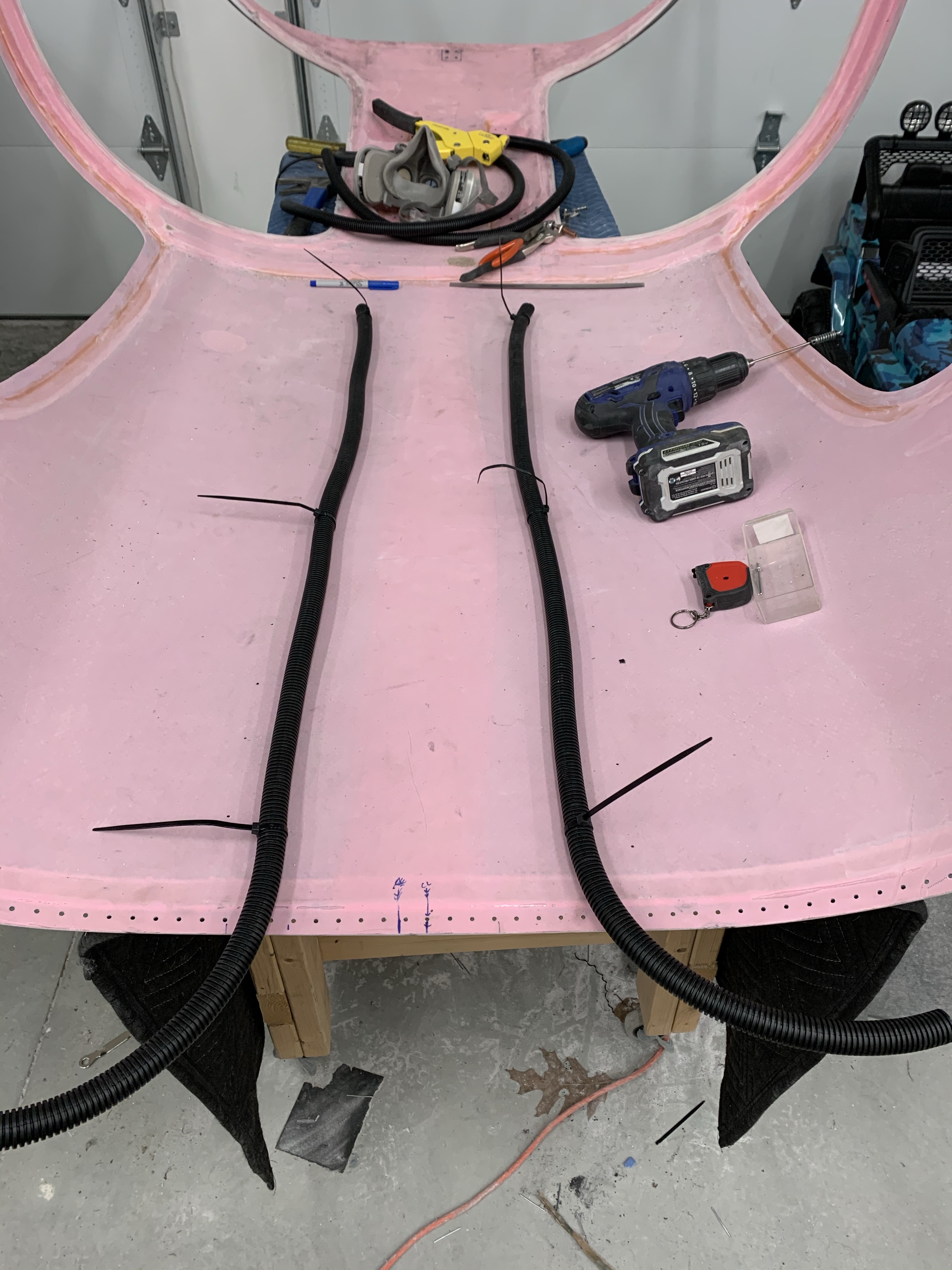Continuing from last time, I shaped the foam build ups that house the conduits into the switch pod with a long knife and sandpaper. Here you can see the basic shape I was after. There were some imperfections, so in the end I put a layer of epoxy flox over this whole structure to harden it up and provide a good base for filler on top. I’m leaving a gap for the support bar to go into place and get bolted down. I’ll then glass over this front area later once the cabin top is attached to the plane and make it look nicer.