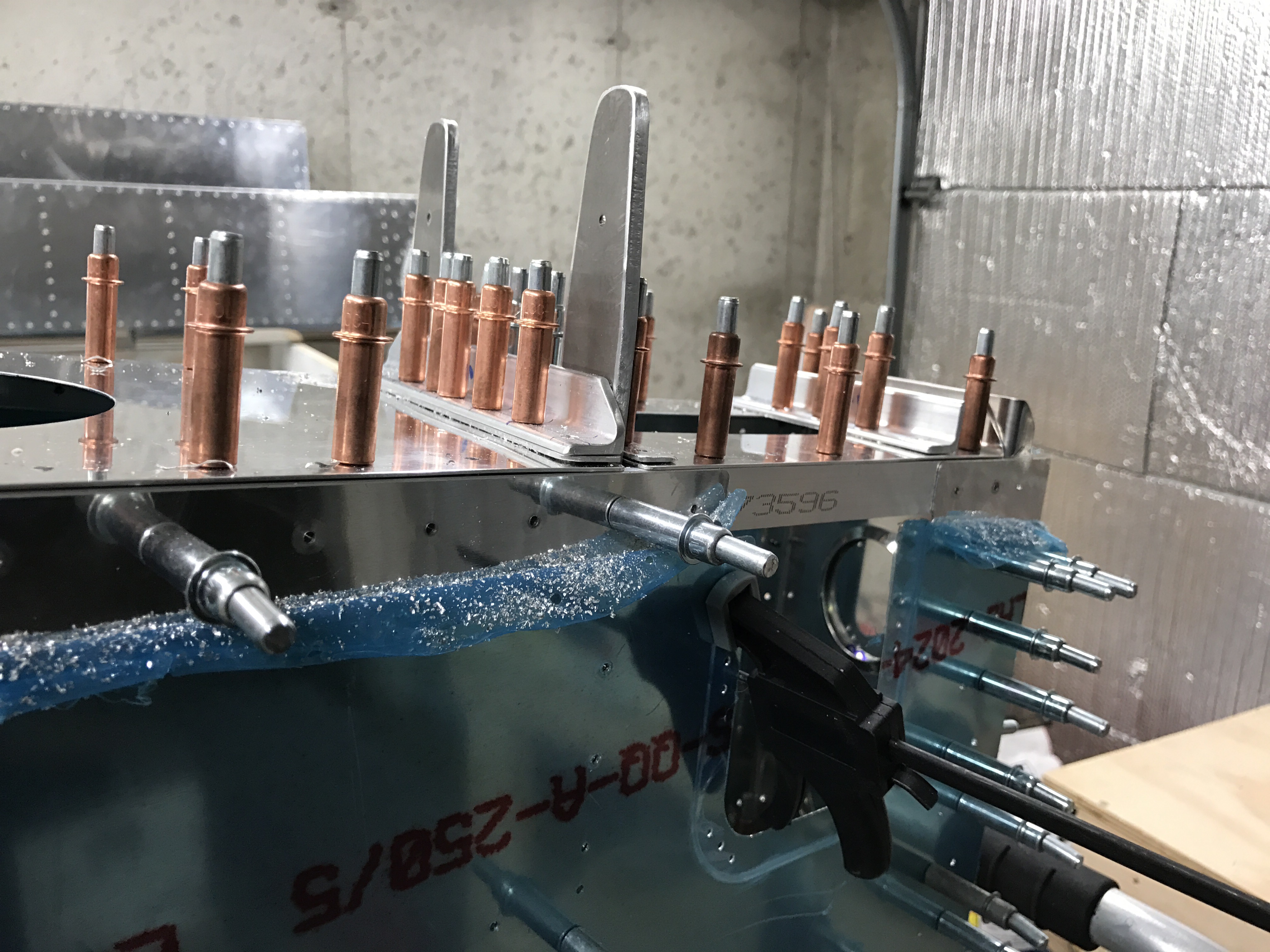 All 4 riblets completed. I used a 20/32″ flange for the inboards and a 28/32″ flange for the outboards to allow for hole edge clearance.