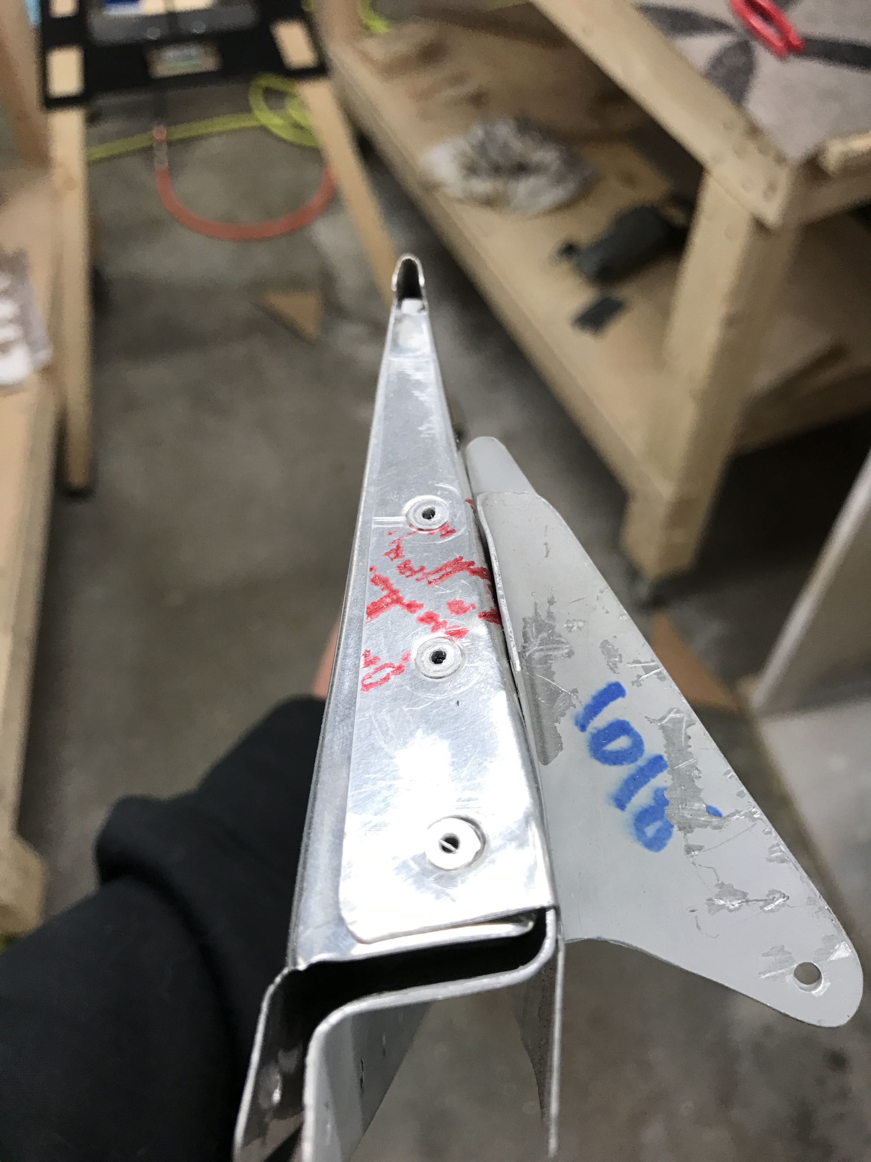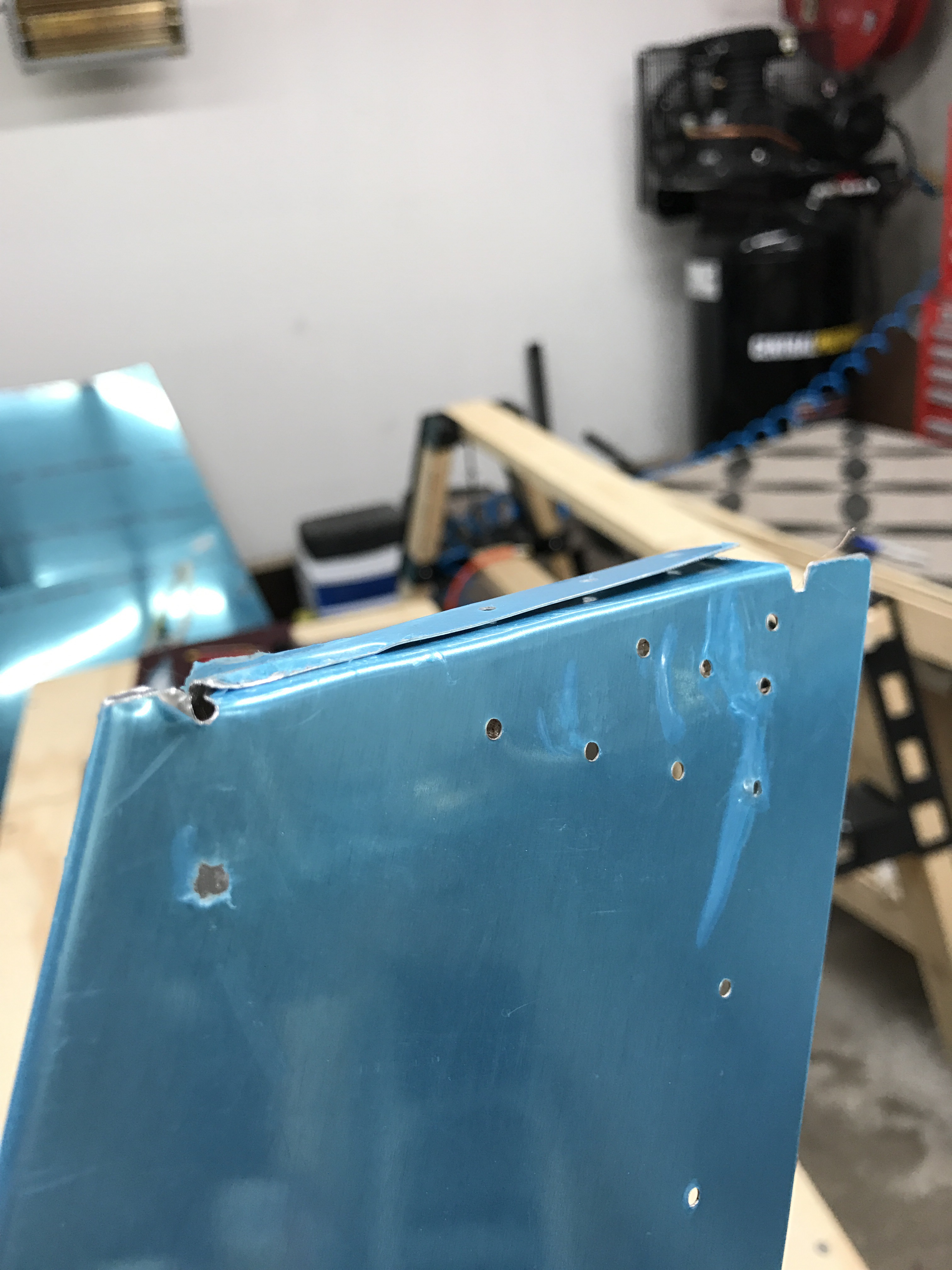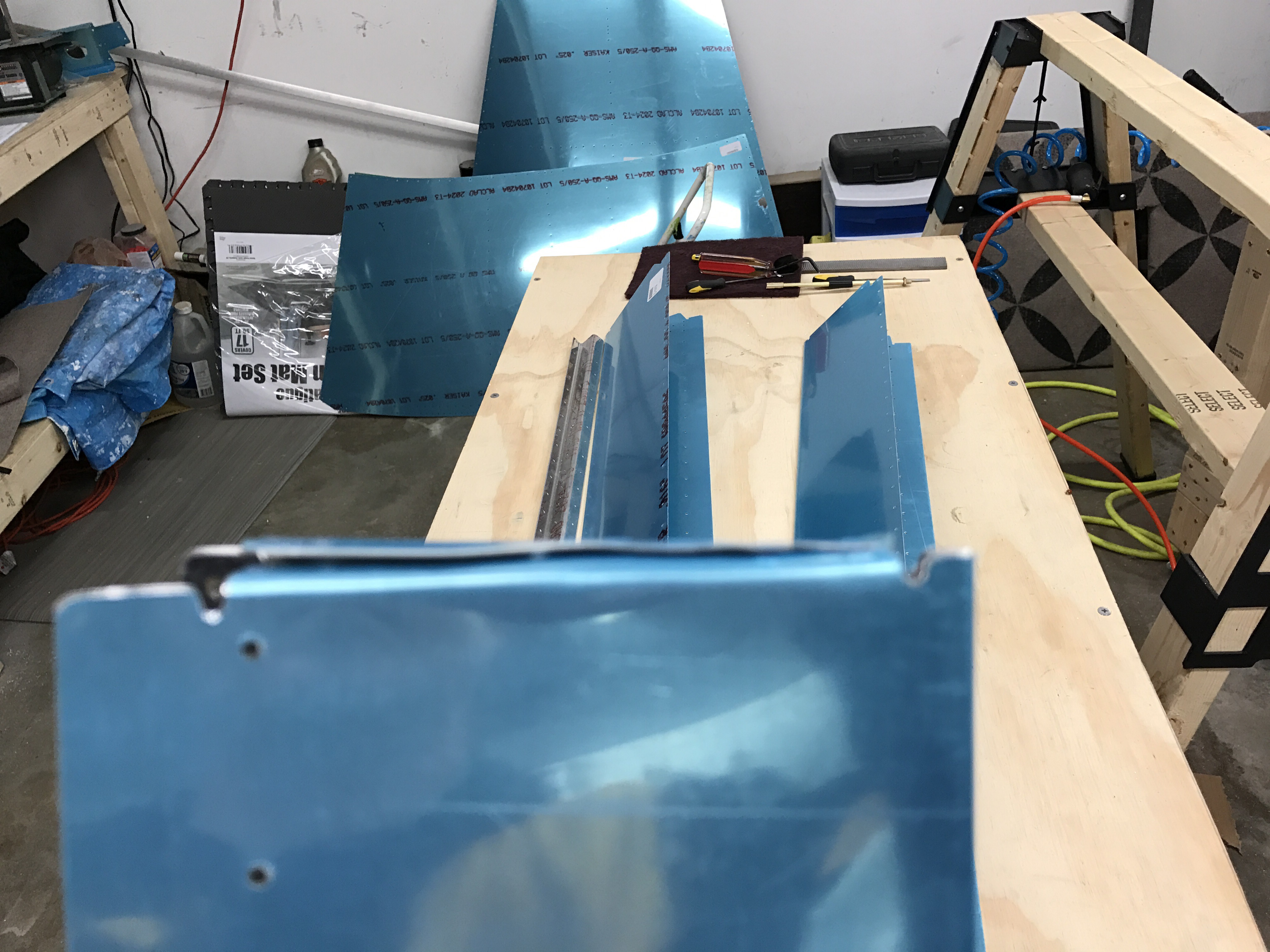 I think they came out really well. The first one I did came out fine, but was a bit of a test on exactly where to bend on my marked line to get the proper part width/flange length. I then was able to bang out the 4 riblets that I needed to make. Two outboard and two inboard riblets. The outboard riblets somewhat interfere with trim tab horns, so I made the flanges a bit longer to share holes and ensure proper edge distance.