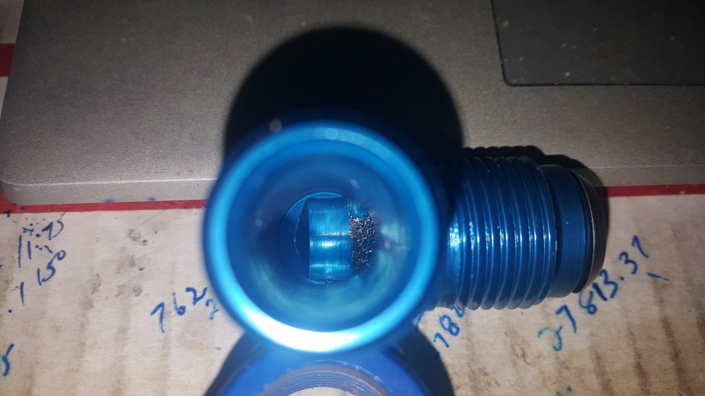 AN screen vs the stock Lycoming suction screen. Screen goes inside of the AN fitting. A view from the other port of the fitting. You can barely see the screen peeking out when it is fully seated.