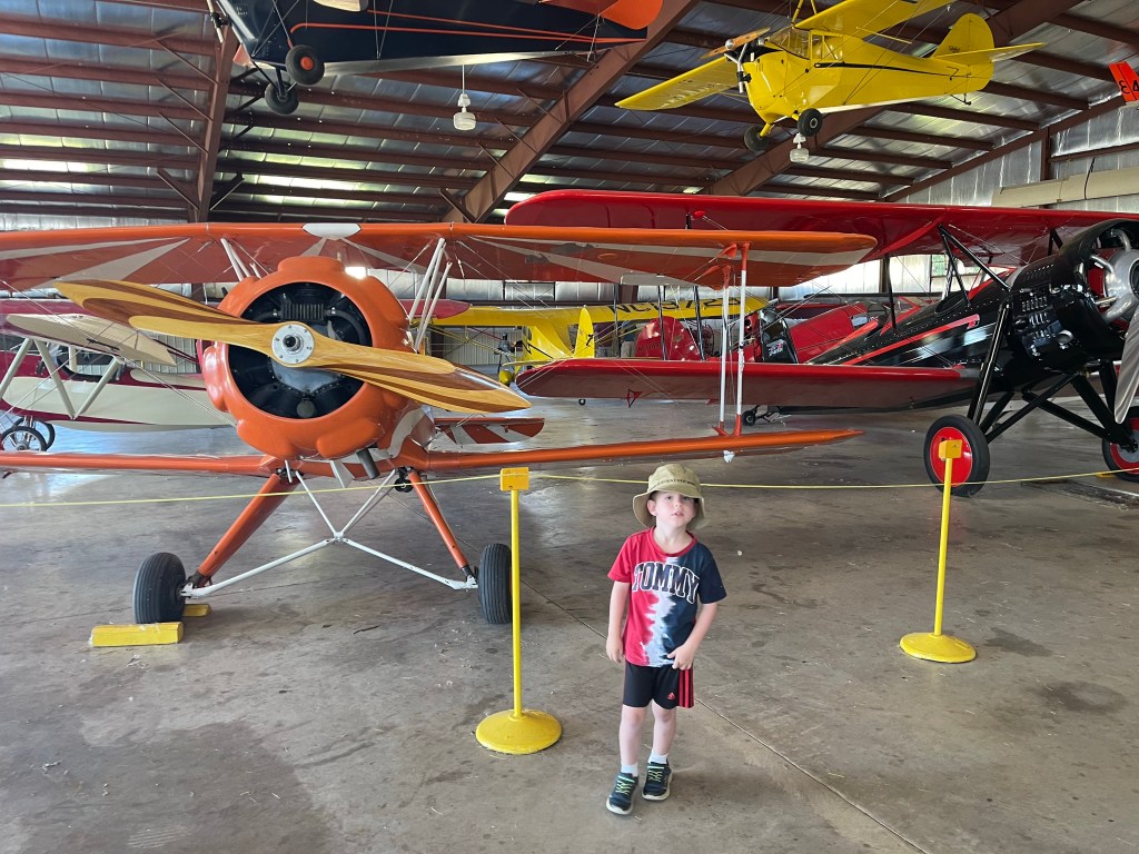We toured the hangars and Declan seemed to enjoy that. He walked to each sign in front of each plane and asked me what it said.