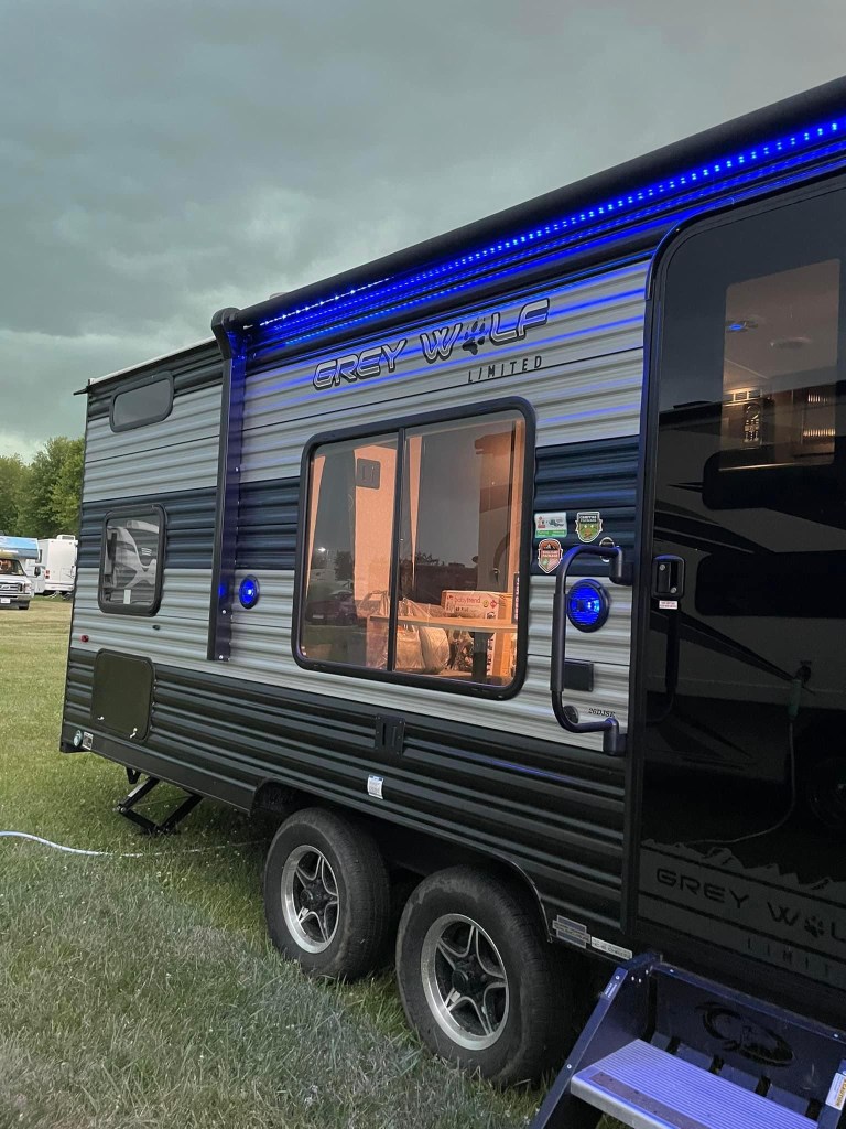 For the first time in several years, I returned to Oshkosh with the family. It just hasn’t worked out recently based on the Pandemic as well as Jeanine being in nursing school. Seeing the RV-10 isn’t ready yet.. we decided to fly commercially to Chicago and drive the 2.5 hours north to KOSH. It didn’t seem to make sense to take a connection flight to a closer airport seeing it was a short flight. The time waiting for a connection probably would have been pretty close to the same amount of time overall. Also seeing how many flights go into and out of Chicago, any flight delays/cancellations would be easier to deal with. We were actually delayed 2 hours due to storms and a ground stop in Chicago.. No worries other than arriving a little later in the afternoon then we expected. We rented a car through Turo and the owner of the car came and picked us up at the airport, drove us back to his house, and off we went. We’ve used Turo twice now and it’s worked really well. We rented a 26′ travel trailer from Kunes RV and had them deliver it to our site the week leading up to the show. We decided to do a water and electric site. We could have dry camped, but it’s just easier with AC and basic things with a 5 year old. Flying in commercially is tougher in terms of trying to get and use a generator. So water/electic site was it!