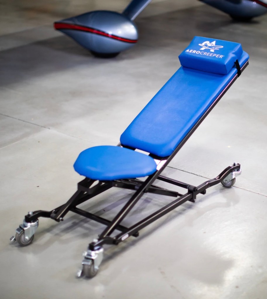 I also bought a nifty adjustable creeper for working on the airplane now in the garage as there are several things to do on the belly of the airplane. It’ll also come in real handy in the hangar. Not only for working on the plane, but for cleaning it too.